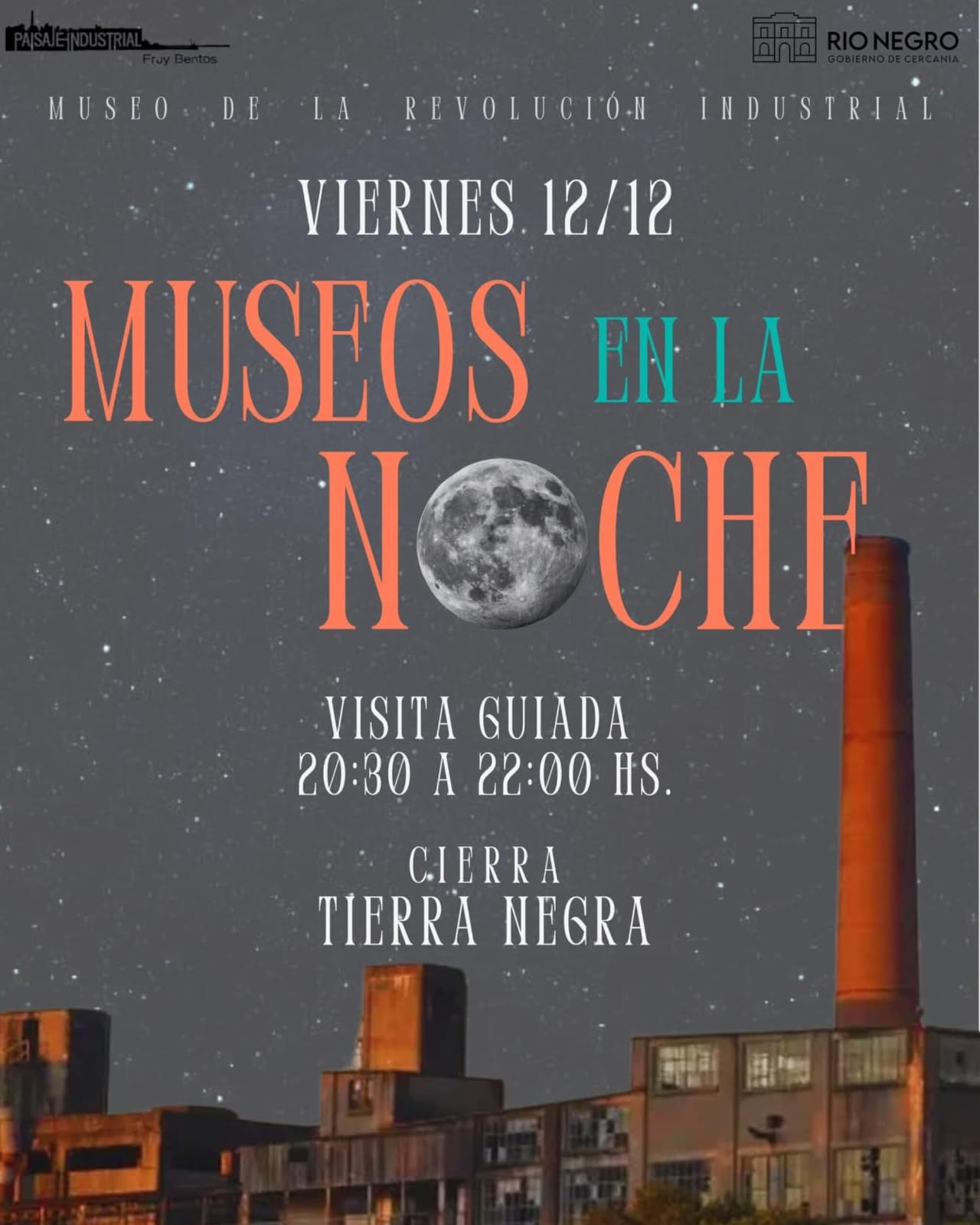 Museos en la Noche en el Museo de la Revolución Industrial de Fray Bentos. Recorrida guiada gratuita. Cierra Tierra Negra.